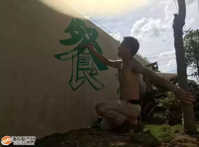 或许你不认识他,但他写过的字你一定见过。据他说,目前在浦北县绝大部分的墙体广告字几乎都是他写的,并且目前在浦北只有他一人从事涂写墙体广告字。